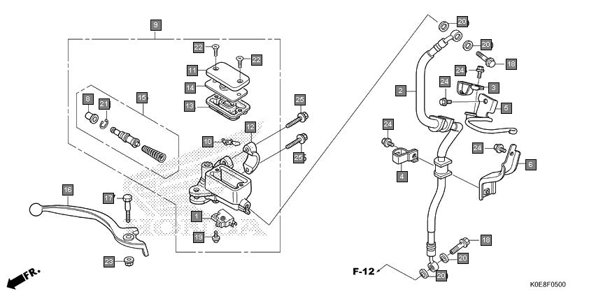 5 | 45160K0ED00 | STAY COMP. A, FR. BRAKE HOSE | 1 |