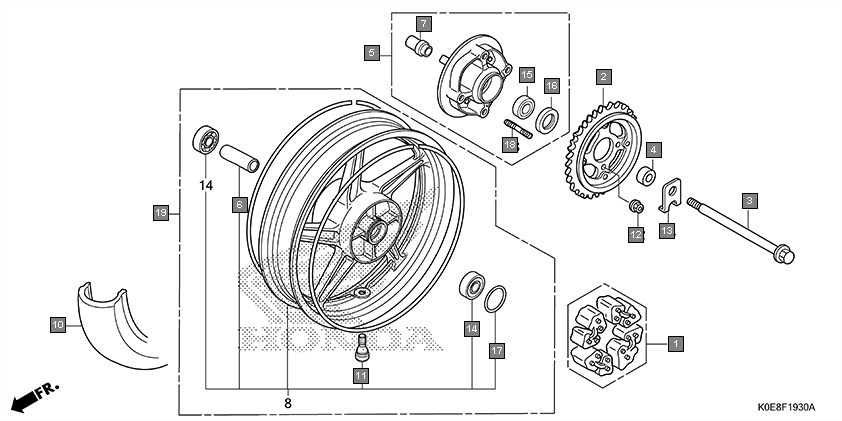 5 | 42615K0ED00ZB | FLANGE SUB ASSY., FINAL DRIVEN *NH105* MAT BLACK(#15-#20) | 1 |