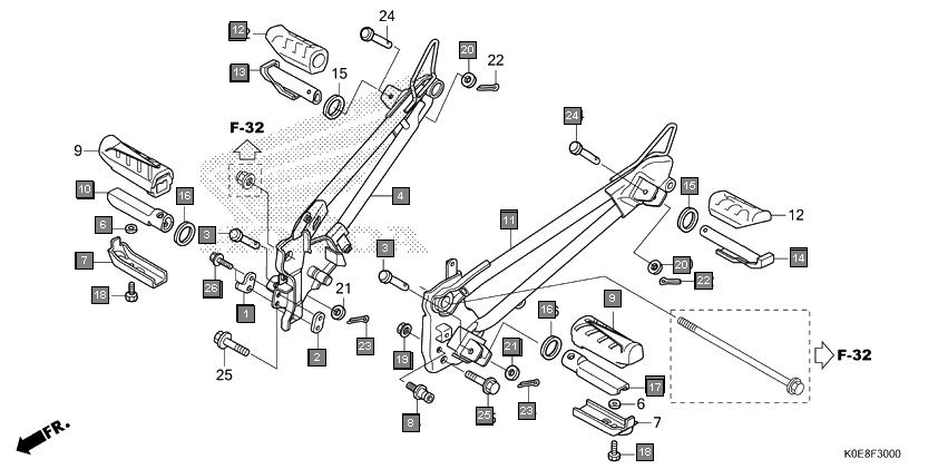 23 | 90131KWPF00 | PIN, PILLION STEP | 2 |