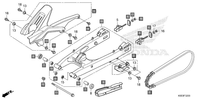 10 | 90121KSP900 | BOLT, SWINGARM PIVOT | 1 |