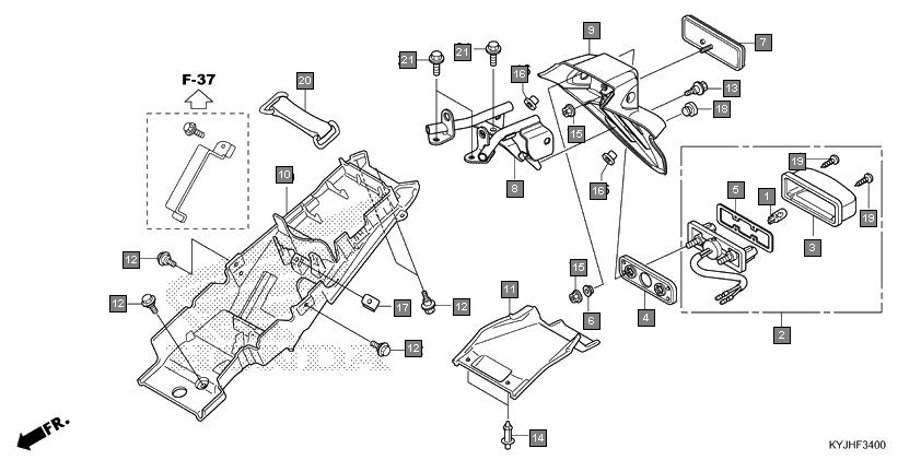 2 | 33720KYJ901 | LIGHT ASSY., LICENSE(12V 5W) | 1 |