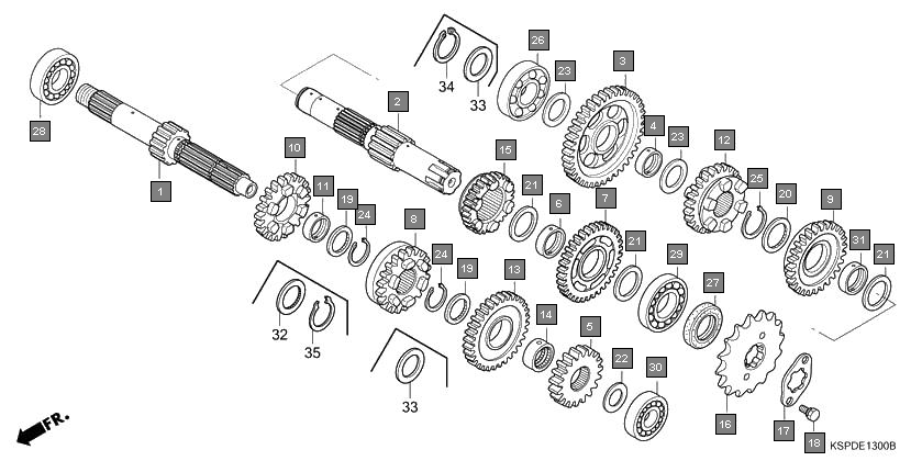 13 | 23491KSP860 | GEAR, MAINSHAFT FIFTH(32T) | 1 |