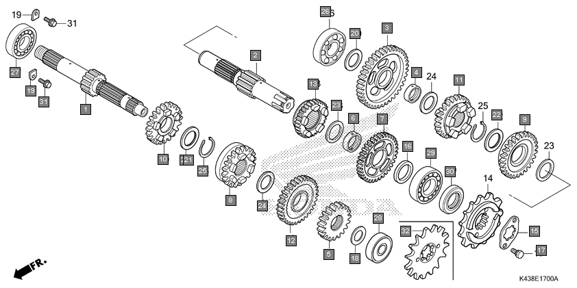 7 | 23441K43900 | GEAR, COUNTERSHAFT SECOND(34T) | 1 |