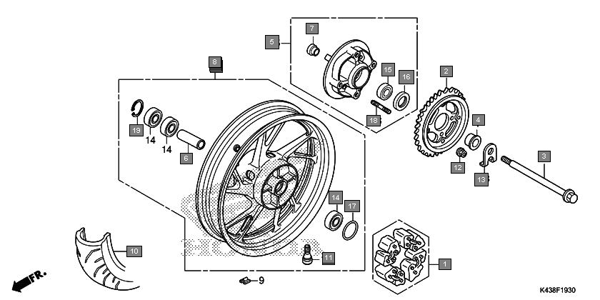 14 | 42650K43D40ZB | WHEEL SUB ASSY., RR.(WL) *NH303M 2*. MAT AXIS GRAY METALLIC | 1 |