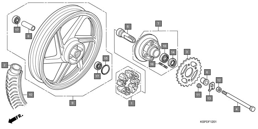 3 | 41201KVE900 | SPROCKET, FINAL DRIVEN(43T) | 1 |