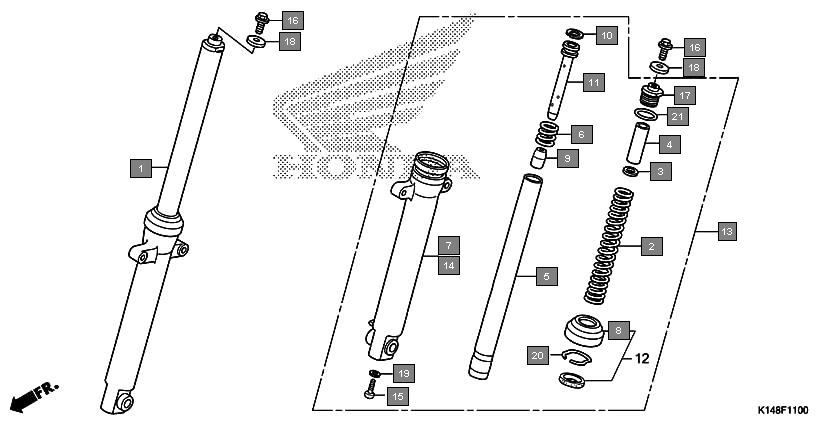 12 | 51490KWA941 | SEAL SET, FR. FORK | 2 |