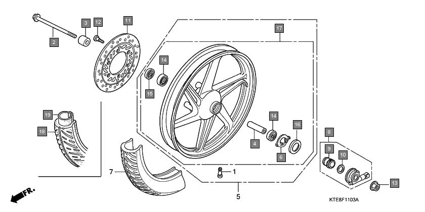 2 | 44311KSP900 | COLLAR, FR. WHEEL SIDE | 1 |