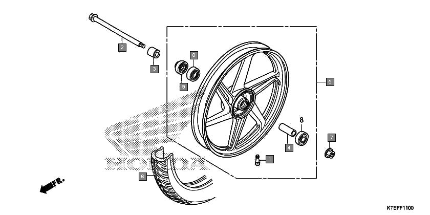 5 | 44650KTE601ZA | WHEEL SUB ASSY., FR. *NH303M* MAT AXIS GRAY METALLIC | 1 |